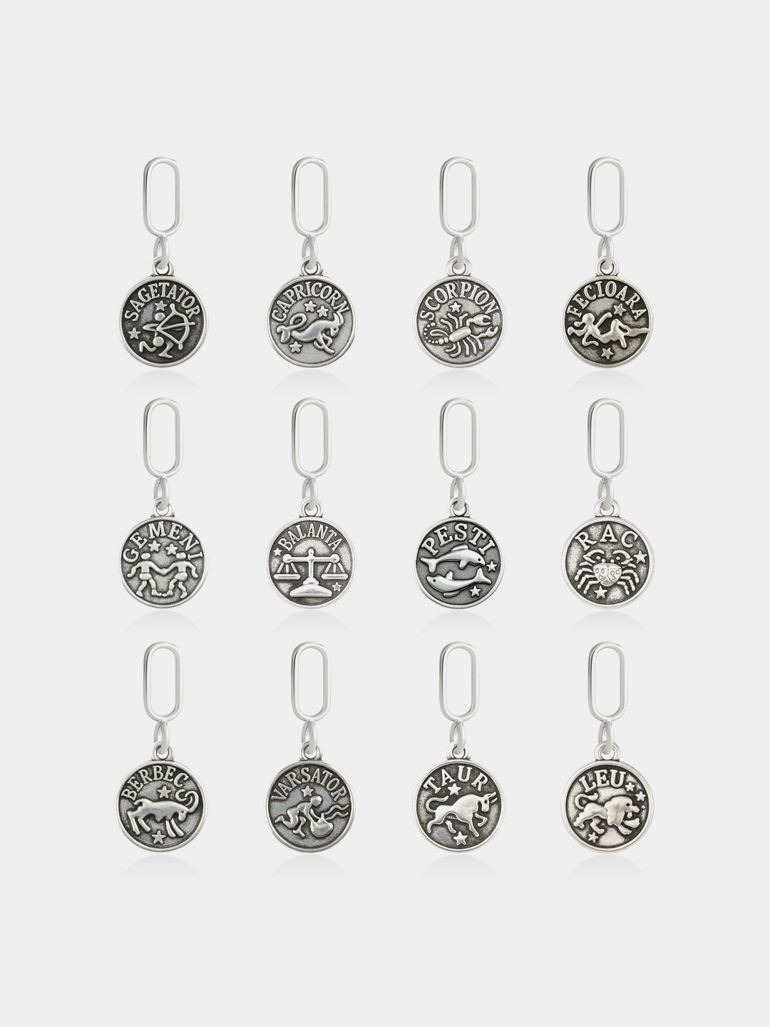 A1 耳環的可替換墜飾配件。將星空的指引,刻畫成一枚隨身的幸運金幣。採用浮雕與做舊處理,讓符號更具立體與層次感,保留了歲月的溫度。想讓 A1 多一點「故事感」時,就選擇你的星象。低調的啞光質感,承載著屬於你的性格關鍵字。